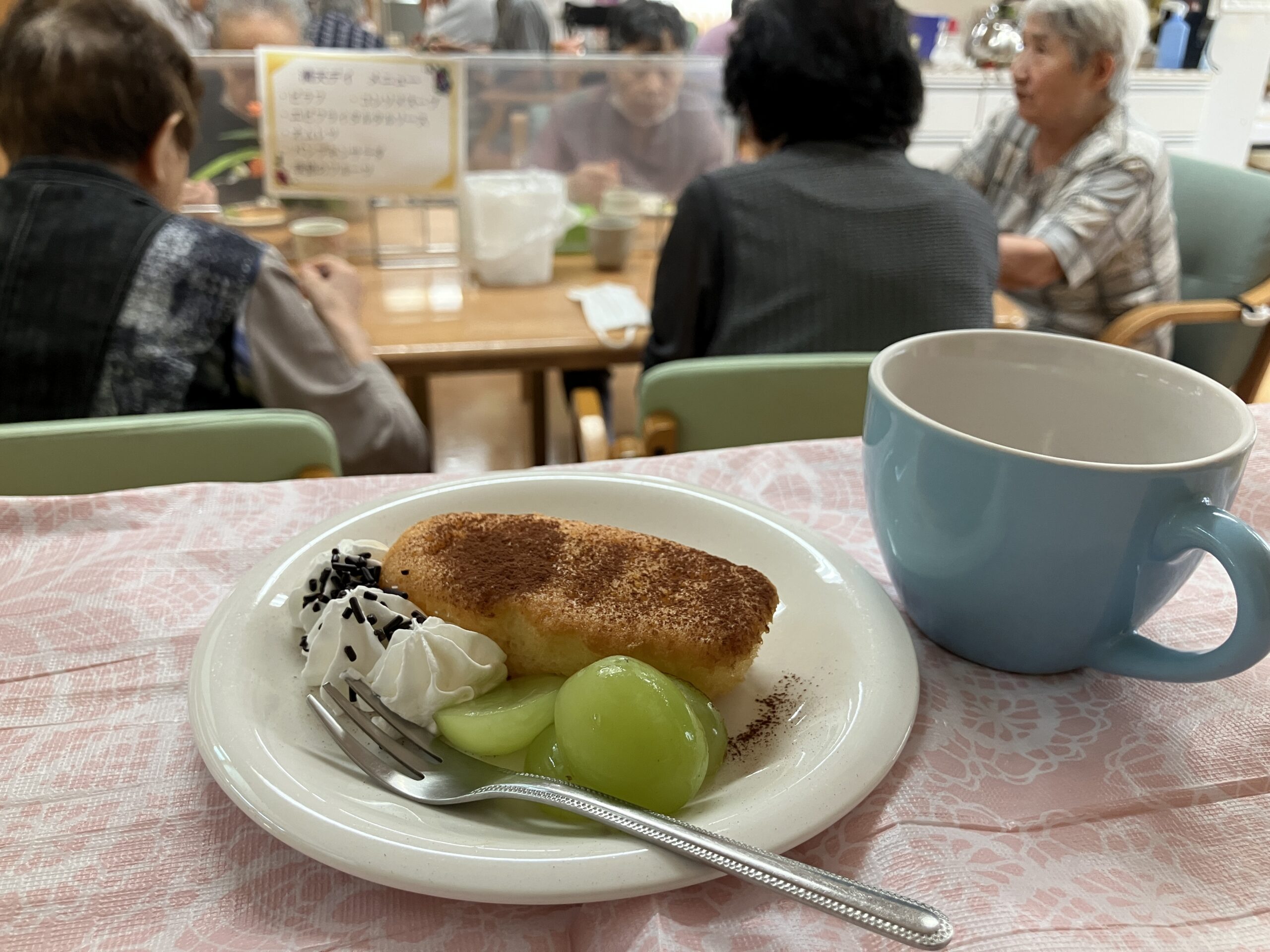 おやつには“秋のフルーツ添えケーキ”をご用意🍰