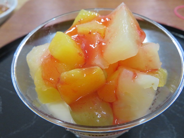祭りの締めくくりは、凍らせたヨーグルトにカットフルーツ、ジャムをトッピングして