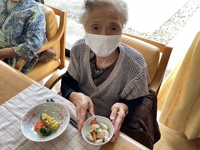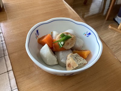 厨房職員にお任せして、煮物の彩に添えていただきました(^_-)-☆