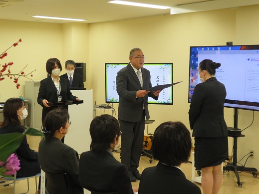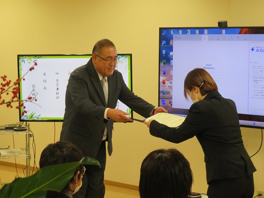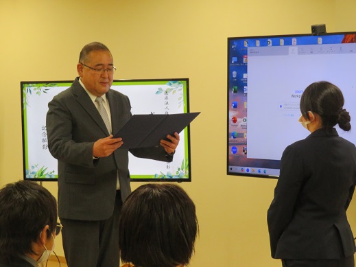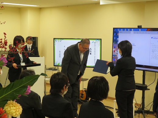 村上副本部長より、表彰状と記念品を贈呈いただきました。