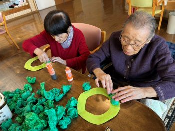 イベントレポート 楓の家ヒメリンドウ棟~クリスマスリース作り~ 2025.11.24 楓の家 こんにちは!ヒメリンドウ棟です😊 先日、クリスマスに向けてクリスマスリース作りをしました! 「難しいなぁ~」「どこに貼ろうかな?」と考えながら行っています。 完成しました✨ 次は何ができるかな? お楽しみに~😊 (2025年11月24日 医療法人社団緑愛会楓の家 介護職 遠藤)