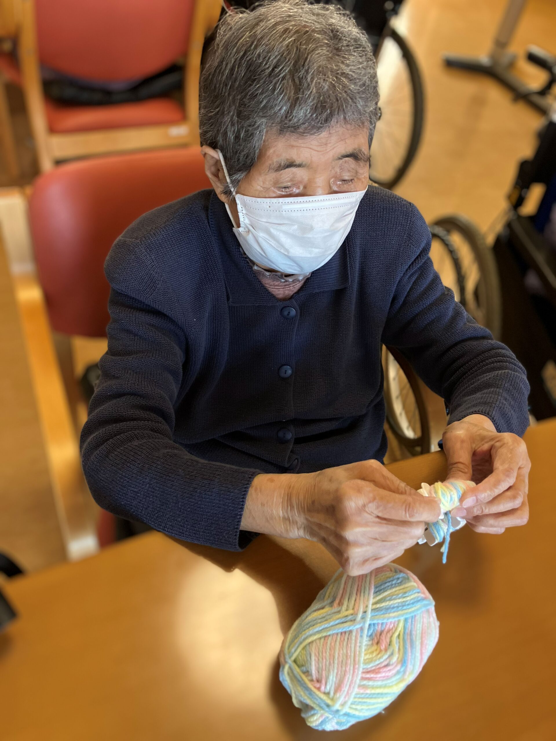 機械に好きな色の毛糸をぐるぐる巻いて🧶、次の工程!