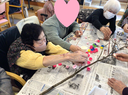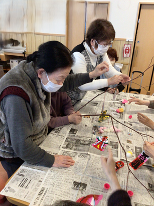 先日、小正月の恒例行事『だんごの木』を皆さんで作りました。