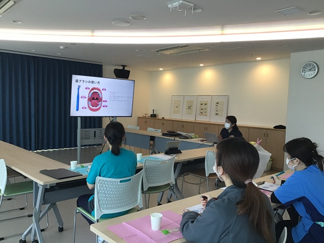 先日、当施設に訪問診療で来ていただいている訪問歯科の衛生士さんを講師にお迎えし、