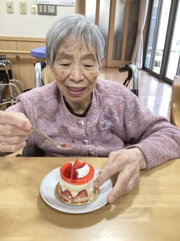 イベントレポート お誕生日会をしました!! 2026.03.09 友結 こんにちは。グループホーム友結、みずきユニットです。 先日、お誕生日会を行いました! 苺がのった素敵なケーキですね♪ 素敵な1年をお過ごしください!! (2026年3月9日 医療法人社団緑愛会友結 グループホーム介護職 荒木)